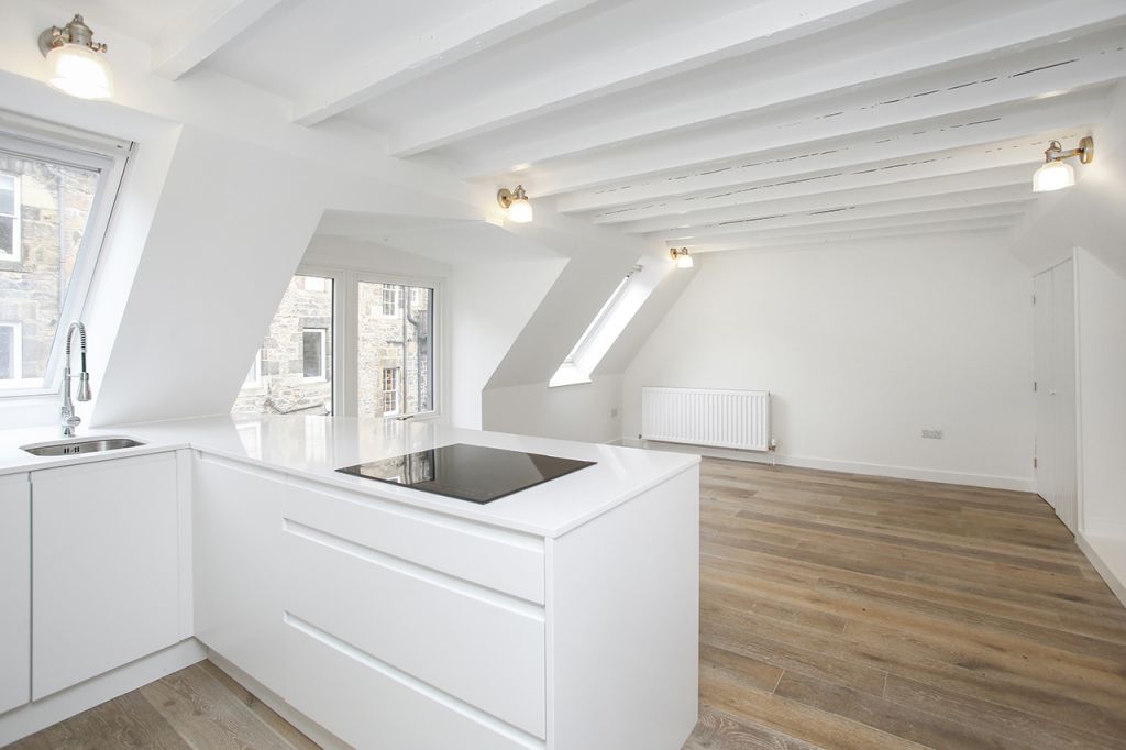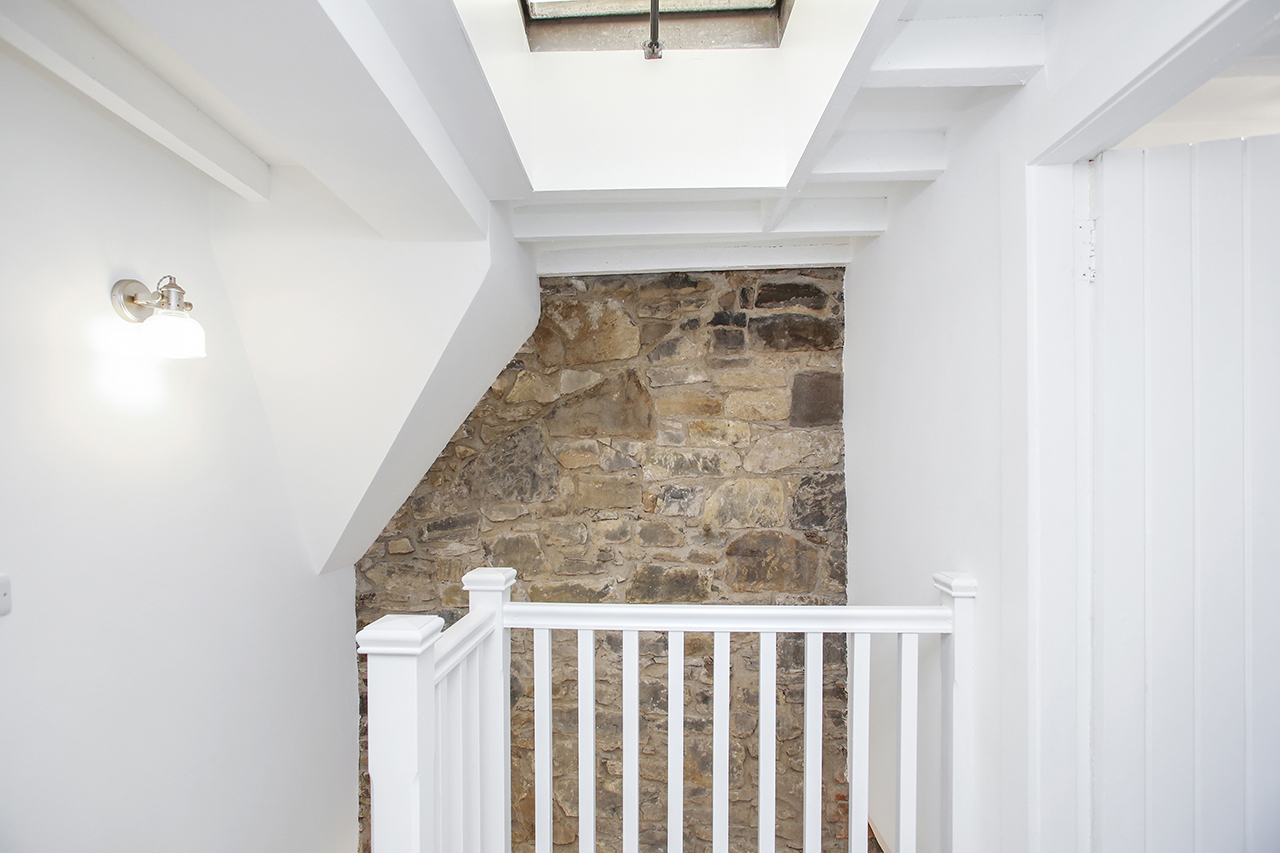 A mews property in the heart of Edinburgh’s west end with potential, our client wanted a natural space, a blank canvas with stone, wood and rope. We went to work ripping the property apart to find it in need of everything from roof repairs to new floors as well as a water supply! After repairing the flooring and roof and renewing electrics as well as all plumbing. We removed some plaster and to our joy we discovered the beautiful natural stone which only needed re-pointed and cleaned, Strong created a light and open space with a high end kitchen and bathroom – designing the large walk in shower space allowed the open space to remain throughout.